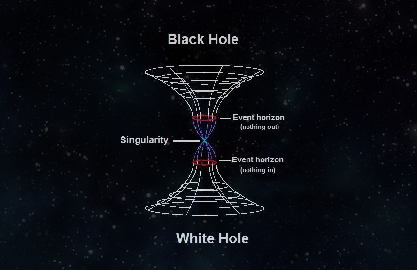 Un trou blanc est un objet dans l'espace qui est l'opposé d'un trou noir. Un trou blanc est aussi fait partie de la théorie d'Albert Einstein,(relativité générale) un trou blanc n'observe pas, ça repousse les objets. Les physiciens décrivent un trou blanc comme un trou noir “inversion de temps, comme un trou noir dans une vidéo, mais joue à l'envers. Alors, que “horizon des événements d'un trou blanc est une limite de non admission. Pas de vaisseaux spatiaux vas entrer un trou blanc.